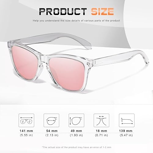 TAC Polarized Lens: Polarized sunglasses reduce glare reflected off roads, bodies of water, snow, and other horizontal surfaces. Restore true color, eliminate reflected light and scattered light, and protect eyes perfectly